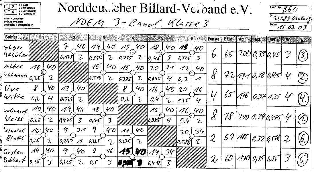 | Ergebnis NDEM Dreiband KL. III | 16.02.03 bei bgH | ||||